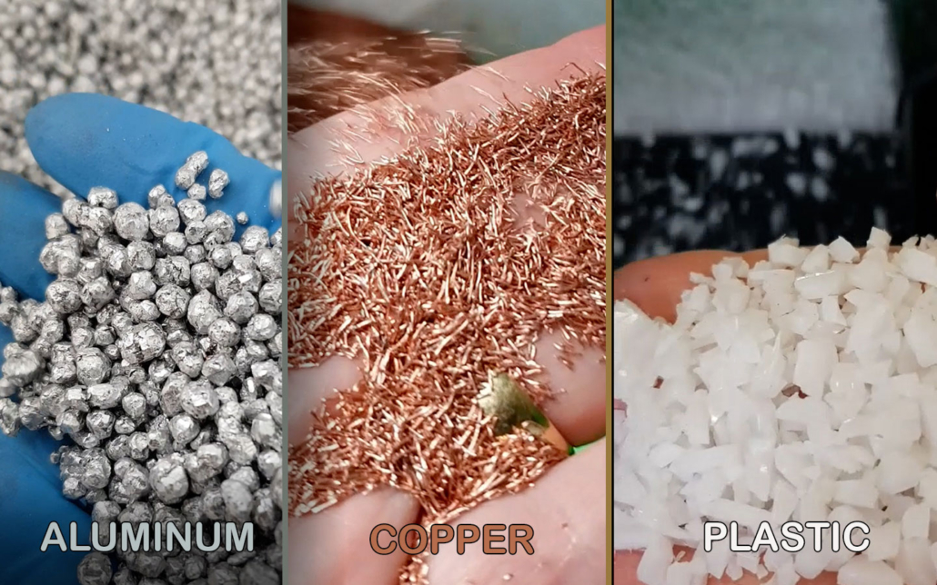 - Recupero di metalli da cavi elettrici (separazione tra rame ed alluminio; separazione di rame ed alluminio da PVC o gomma);