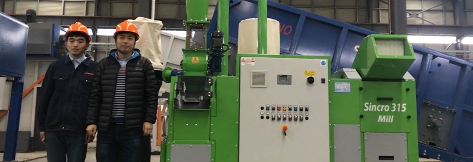 Granulatore compatto Sincro315mill, con turbina e separatore a zig-zag, per il riciclaggio di cavi misti.