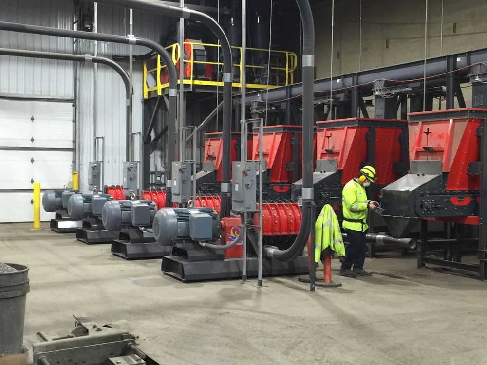 Un grossissimo impianto Guidetti composto da 4 linee diย raffinatori e separatoriย con produzione 5 ton/h. Consente di recuperare tutto il rame presente ancora nella plastica di scarto, proveniente da altri trattamenti di riciclaggio cavi elettrici.